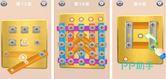 通过拧螺丝的方式来拆解迷局,将螺丝放到适合的位置,将原本已经被螺丝钉上钉子的铁板顺利的取下。整体的操作较为简单,也很容易上手,拥有着较为精良的画面以及鲜艳的色彩,让众多玩家都爱不释手,重要的是老少皆宜关卡难度,更是循序渐进,轻松挑战你的智力极限,随时随地轻松获得乐趣。