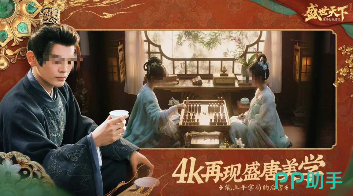视觉表现方面,游戏采用电影级镜头语言,场景建模精细还原大明宫的恢弘气象,服饰与妆造均依据唐代风格精心打造。所有角色均由专业演员实拍演绎,结合高质量配音与运镜调度,呈现出接近纪录片级别的沉浸感,极大增强了历史代入氛围。