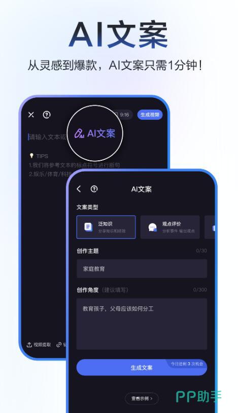具备完整的剪辑基础功能,包括精确切割、合并视频、画面裁剪与片段拼接,还可添加转场动画以增强流畅度。融合当前流行的AI技术,只需输入主题方向与内容风格,即可生成初步文案草稿,若不满意可多次优化调整,直至符合预期,大幅提升内容创作效率。
