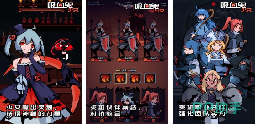 吸血鬼少女是款主打休闲性的放置类战斗游戏,自由收集一些吸血鬼伙伴陪你一起战斗爽到飞起,吸血鬼具备着神秘力量可以在战斗中大大提升实力,放置卡牌执行公平PK任务的设定趣味性更强,游戏提供的吸血鬼数量众多能够组合起来战斗,欧美卡通风的UI跟中世纪的背景呈现让本作更具魅力。