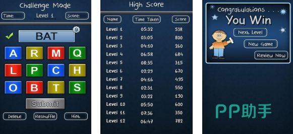本作是款超级锻炼智商的英文版本文字互动游戏,使用英文字母和单词进行猜字谜互动性极高,每关都有特定的时间限制能保证大家快速欢快,超丰富的猜字谜游戏模式给予玩家智商上的锻炼,竞技互动的猜谜理念也会令猜字谜游戏粉丝着迷,游戏猜谜机制十分特殊也可可快速让大家学会各种英文字母。