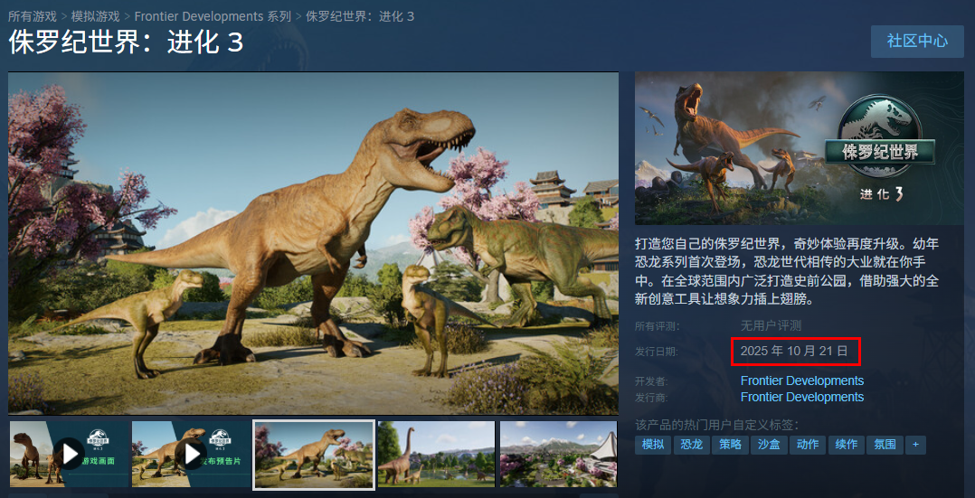恐龙主题公园模拟经营系列目前已经出到第三代了,本作在2025年夏季游戏节上正式亮相,许多玩家都在期待上线,因此本文为大家详细介绍一下侏罗纪世界进化3上线时间是什么时候,也是该系列在模拟经营深度与创意自由度上的一次重大飞跃。下面一起来看吧。
