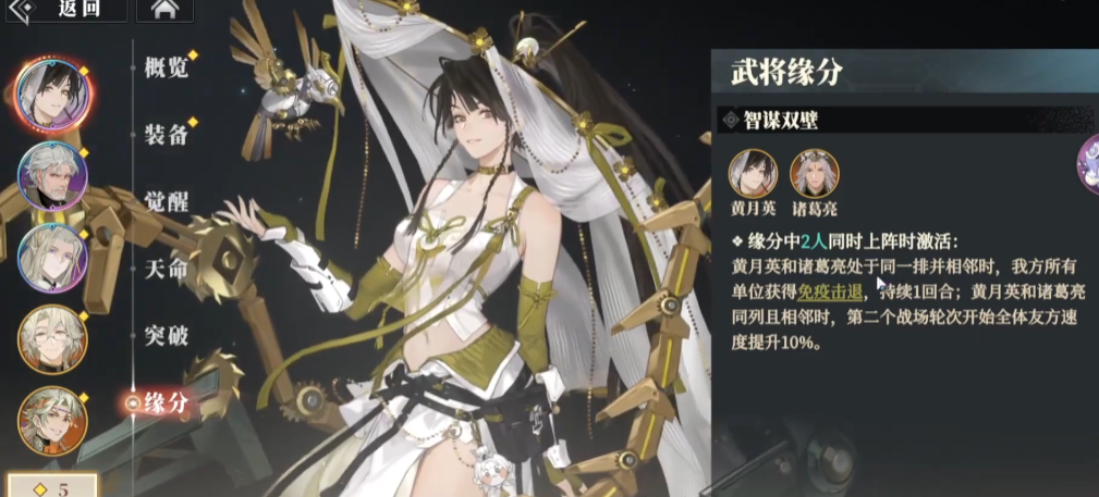 综上所述,《三国志幻想大陆2枭之歌》中的黄月英虽不具备顶尖的直接输出能力,但她作为功能性辅助武将,凭借独特的能量与战意调控系统,极大增强了蜀国阵容的续航与灵活性。她的加入让队伍搭配更具策略深度,也为玩家提供了更多战术选择空间。