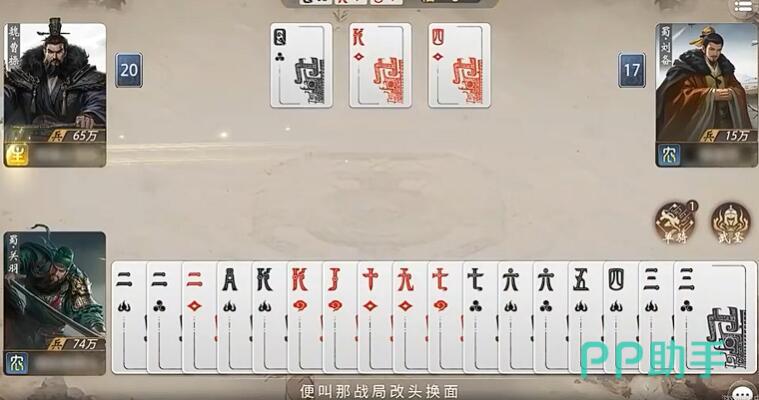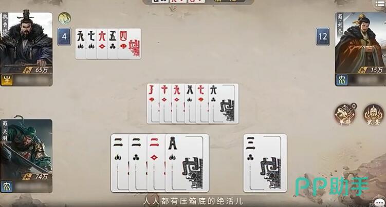 游戏主打高速对战体验,3人模式为1V2快速对决,类似经典三人斗地主类棋牌结构,节奏紧凑;5人模式则需识别队友身份,明主拥有初始卡牌优势,暗主则需隐藏身份伺机反扑,更具策略博弈性。角色技能系统是本作的核心亮点之一,每位武将都有独特能力。例如关羽在出顺子时可获得万能牌,若搭配赤兔马还能减少一张牌完成五连顺。诸葛亮可通过神机技能预览底牌并调整出牌,姜维通过弃牌提升剩余牌点数,但保留中间数值牌收益更高。每位武将不仅有专属技能,还衍生出多种流派打法,在同类卡牌游戏中极为少见。