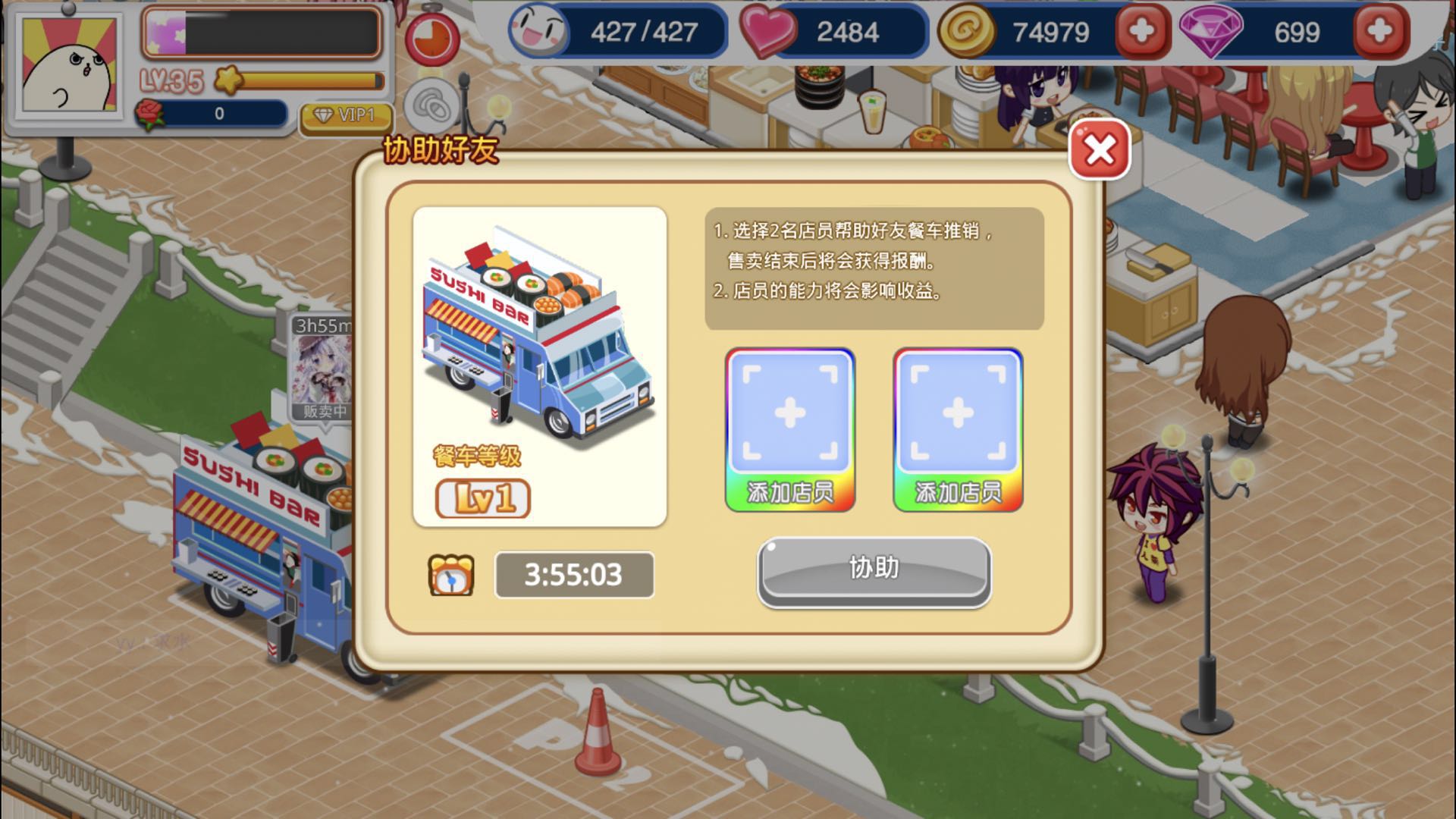3.点击别人的餐车,跳出该玩家的详细信息,选择协助;
