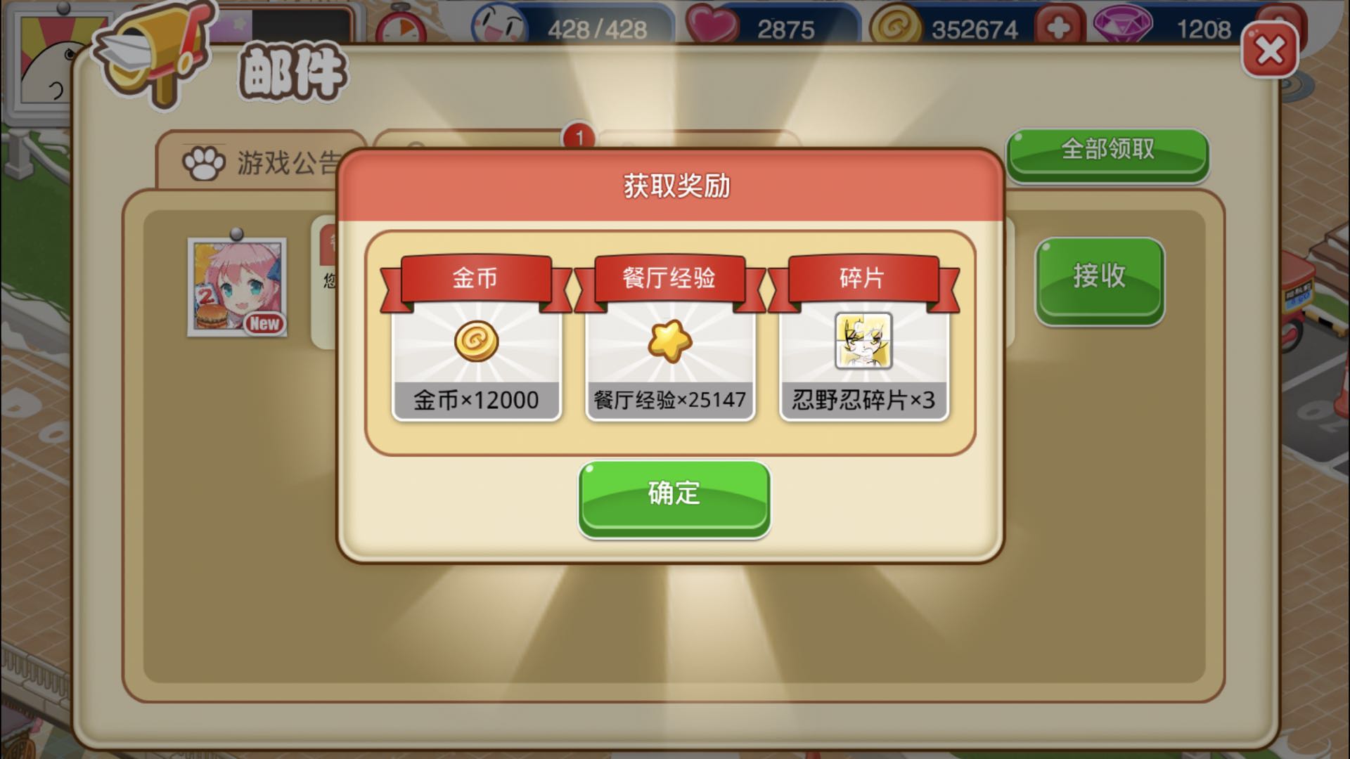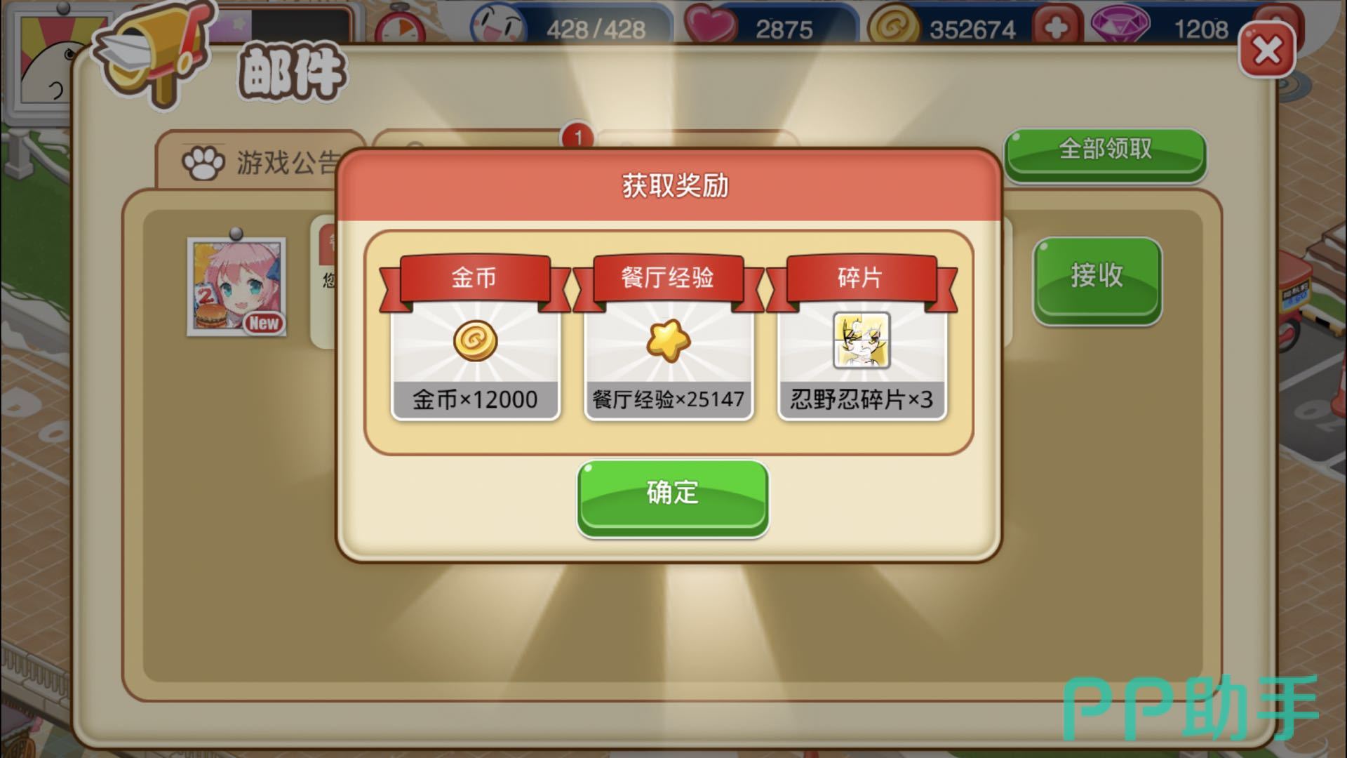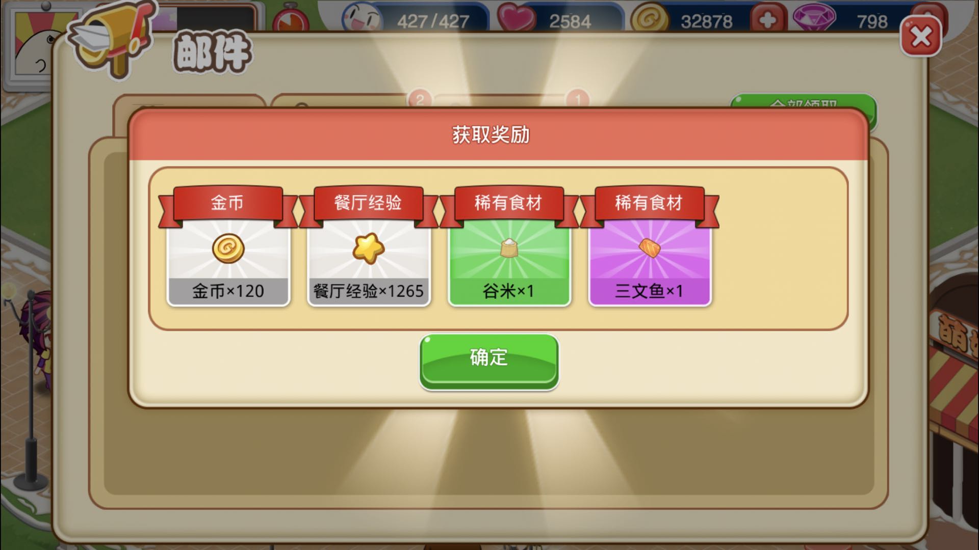 5.等到协助时间一到,就可以在邮件里查收协助餐车宣传的受益了,基本上就能获取到餐车升级所需要的稀有食材啦;