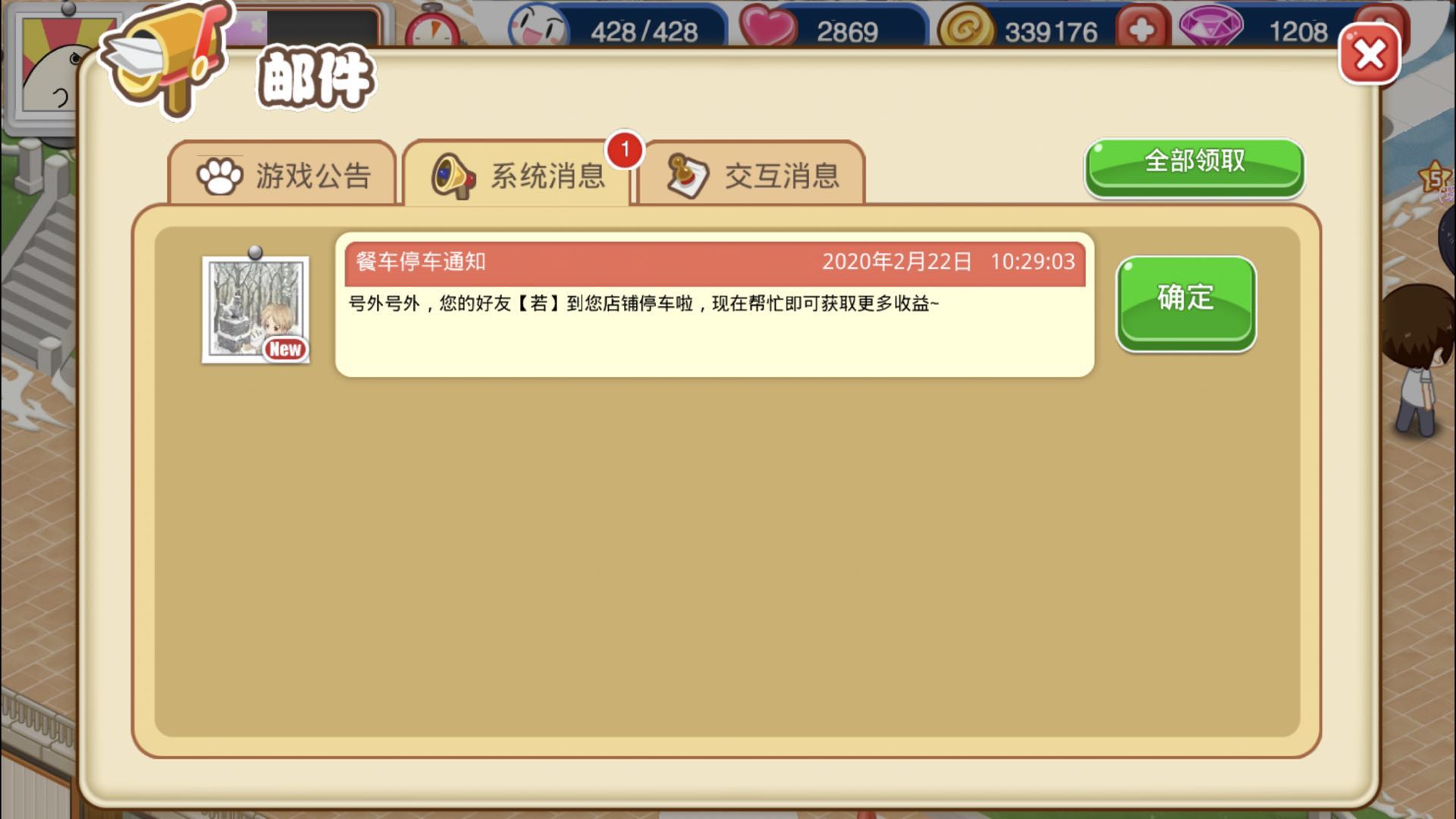 1.首先要召唤其他玩家到你餐厅停车,召唤的方法是可以到频道里提出停车邀请,或者互车,如果有玩家愿意来停车,你的邮箱就会收到停车提醒的邮件。
