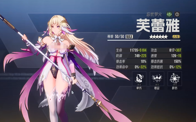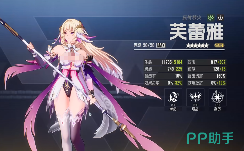 芙蕾雅虽然在这个游戏里只是一个辅助,但角色的能力也是非常优秀的,在常规状态下就能打出130%的伤害,在对战的时候还可以利用其他的技能在额外多加一层净化效果,每增加一层净化效果,角色受到的伤害就会继续提升15%,使用被动技能之后更是能增加其他队友的行动速度,非常适合利用这个技能给其他的成员增加防御效果,等于间接提升了整个队伍的能力,也是比较推荐大家使用的角色。