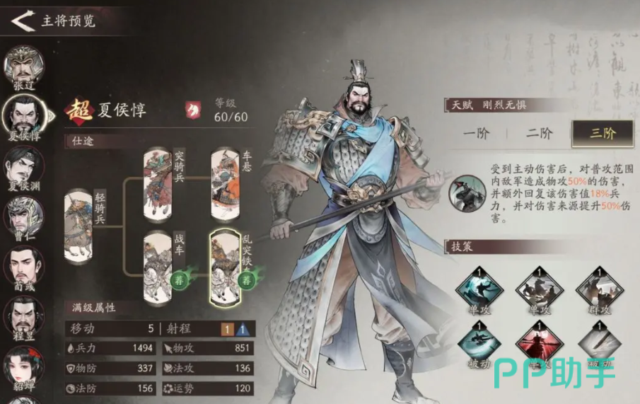 位列T1梯队的武将同样具备不俗的实战能力。游戏初期完成主线任务即可获得夏侯惇,该角色属于超品级别,输出稳定且具备一定的自保机制,随着技能连招的释放,还能降低自身所受伤害,部分技能更可触发连击效果,提升整体打击频率。另一位远程型武将夏侯渊也处于同一梯队,擅长远距离点射敌人,机动性强,战斗风格灵活多变,适合在后排持续施压,为团队提供稳定的火力支援。