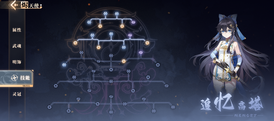 通过这里记忆高塔的爬塔效果,也可以为角色提升后期的强度,而解锁这些新的效果以后,角色在队伍里面的能力也会更丰富一些,除了这些作用在技能上面的效果之外,还有一个武魂的系统,武魂系统是相当于没有成功变成魂精的角色,这些英雄他们就是碎晶,这些碎晶大家是可以通过抽卡来获取的一些东西的,然后是需要给同名的武魂进行使用的,这里同盟武魂可以带来固定的属性提升效果,而且可以跟武器一起搭配带来特效。