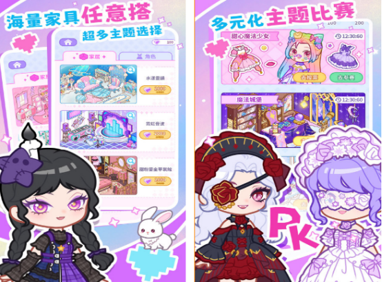 在进入了该游戏装修房子的时候,还有超多的主题,都可自由的进行选择,利用海量的家具,在房屋里面进行的搭配方式,使房屋拥有着不同的风格。作为生活模拟类型的,有很多女孩子们都比较喜欢的玩法。包括在百变的衣橱里,通过自由的选择搭配以后,使里面的角色,成为自己喜欢的可爱风格或者是御姐风格,也支持使用相应的装饰品打造专属小屋。
