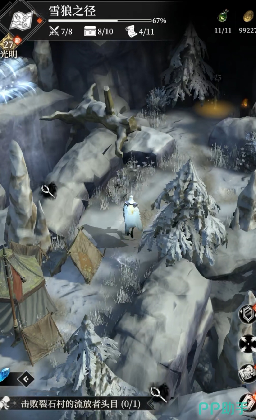 第四步:挑战营地敌人。传送到[雪狼之径]中央位置的营地图标处,点击后会出现两个选项,务必选择“战斗”并成功击败对手,方可获得任务道具【余烬核心】。一旦战斗失败或选择撤离,该节点即被视为消耗完毕,无法再次挑战。