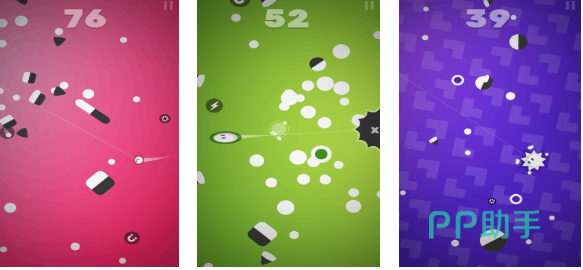 飞跃是比较有意思的一个旋转小球来消除解压的手游,你要控制一个小球球不断旋转触碰白球进行消除,消除目标众多也有着千奇百怪的道具可以触发,随着游戏进度的加快背景颜色也会慢慢变化,空心的小球获得的积分会直接翻倍,随机出现的道具获取难度也比较高,很特殊且极为耐玩的消除机制不会让你失望。