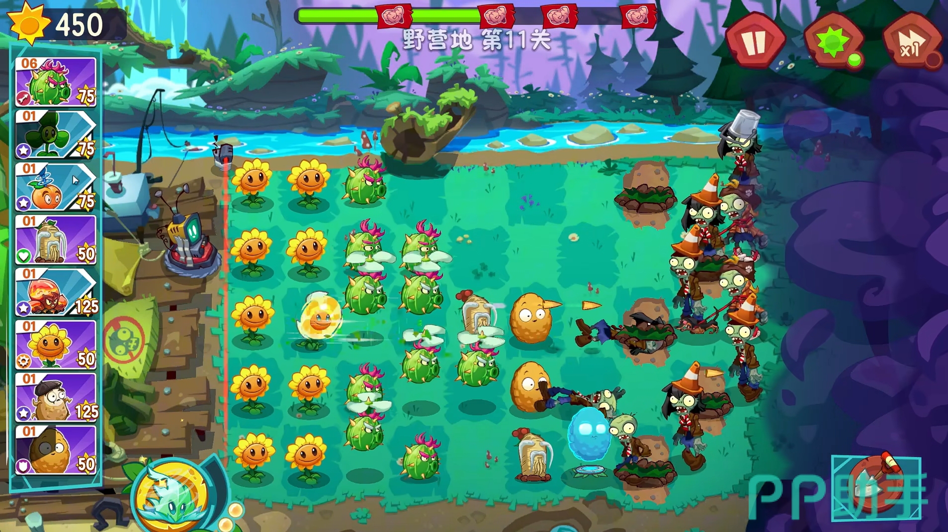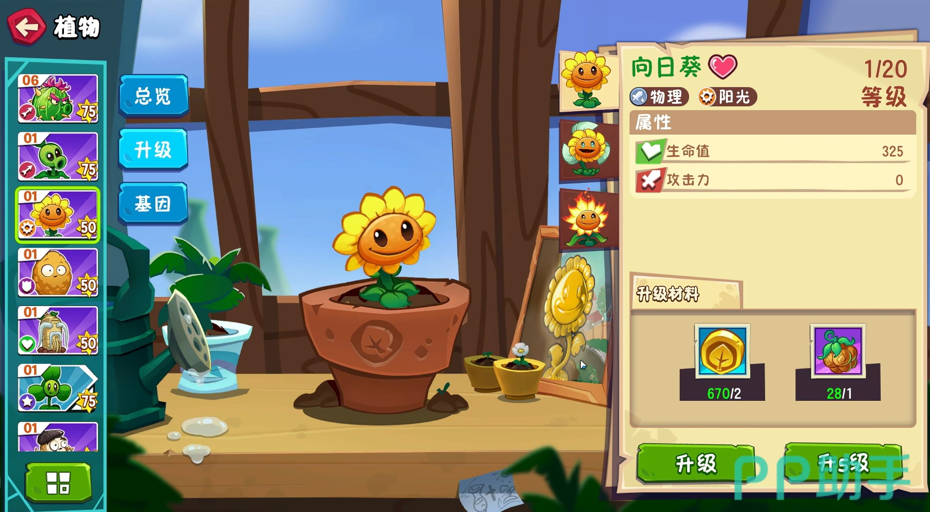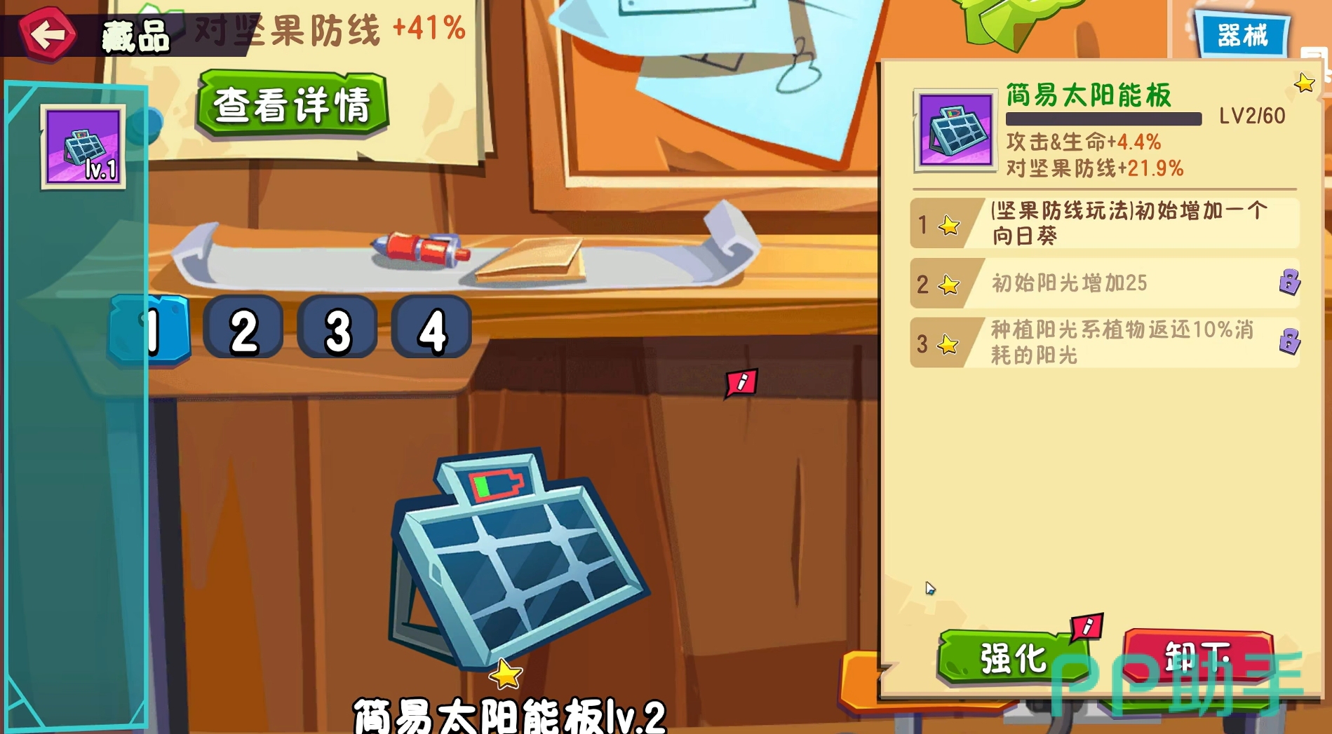 同时,植物大战僵尸3还加入了融合植物的概念,部分植物可通过组合来获得额外的能力,就像豌豆射手可与三叶草融合成旋风豌豆那样,在能发射豌豆攻击僵尸的同时,还可不断地吹走僵尸,使得人们在布置防线时能拥有更多不同的战术套路。此作中的植物也延续了二代中可进行升级的特点,令它们拥有更为强大的属性,甚至还能通过基因改良,令它们在战斗中能获得更多的特性。除此之外,藏品功能不光可让各位收集到各种战利品,它们还可强化为战斗带来多种实用的加成效果。