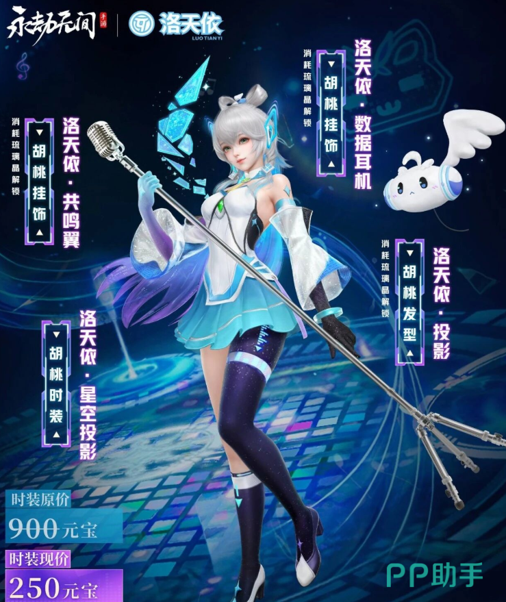 本次联动将上线胡桃专属外观“洛天依星空投影”,原价为900元宝,首期限时优惠仅需250元宝即可入手。若选择购买捆绑礼包,则只需300元宝便可同时获得胡桃极品时装与斩马刀极品皮肤,性价比极高,是收藏党不可错过的入手良机。