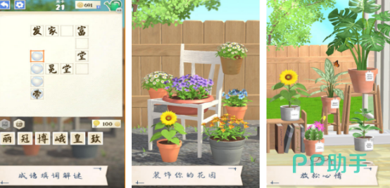 创新地将成语挑战与模拟经营玩法融合,游戏中设有艺术感十足的插画与优雅字体设计,营造出宁静雅致的游戏氛围。主要通过字母拼合完成成语填空,考验玩家的逻辑推理与联想能力。设有多种闯关机制,如限时答题、解谜挑战等,随着进度推进,题目难度逐步上升。背景以庭院花园为主题,整体视觉风格清新脱俗。