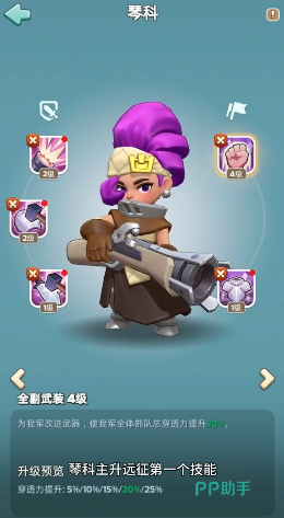 琴科作为紫色品质的辅助型英雄,初期容易获得,且技能成长路径清晰明确。其第一个技能为核心增益技,应优先升级。该技能可为全队提供资源获取加成,无论是在执行远距离任务还是采集类活动中,均可大幅提升收益效率。其余技能如远征相关或讨伐类功能,在前期可暂缓升级。建议先将主技能升至满级,待后期阵容趋于完整后再逐步补足其他技能点。