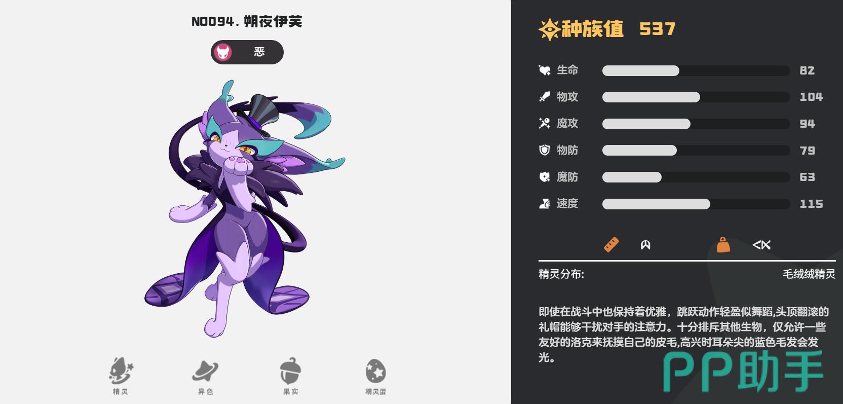 朔夜伊芙是恶系里的跨圈级别的精灵了,纯恶属性,由人气精灵小夜第三次进化得到。速度115在同类型精灵中算顶尖的,物攻104也很不错,生活在毛绒绒精灵区域,也能直接捕捉,不过魔防63有点低,遇到魔攻型对手比较吃力,但是他的被动是免死,遇到致命伤会直接逃逸,能够用来针对PVP中对面的大C,凭借高速进场丢技能,被秒之后换角色,再出来还能先手放技能,也就是说有无脑两次放技能的机会,PVP非常强势。