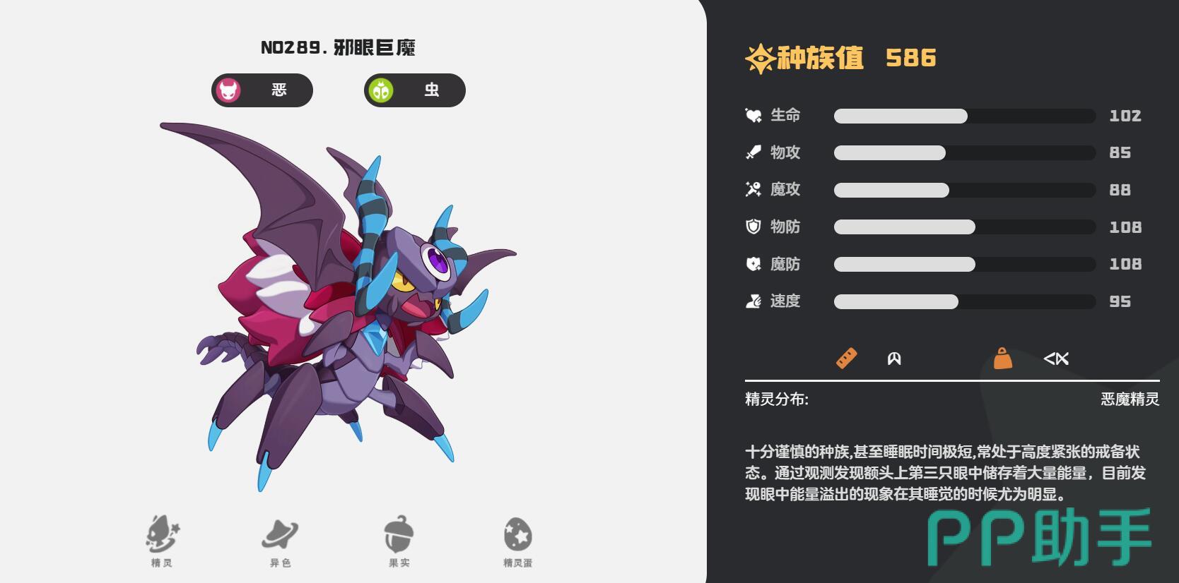 邪眼巨廉的物防魔防都到108,防御能力极强,虽然物攻魔攻一般,但双防出色,适合当盾牌保护队友。再配合被动—能和下一个出场的精灵交换百分比,完全可以硬抗多个大招,运气好还能换掉对方大C,如果大家后期想玩PVP,一定要试试这个角色。