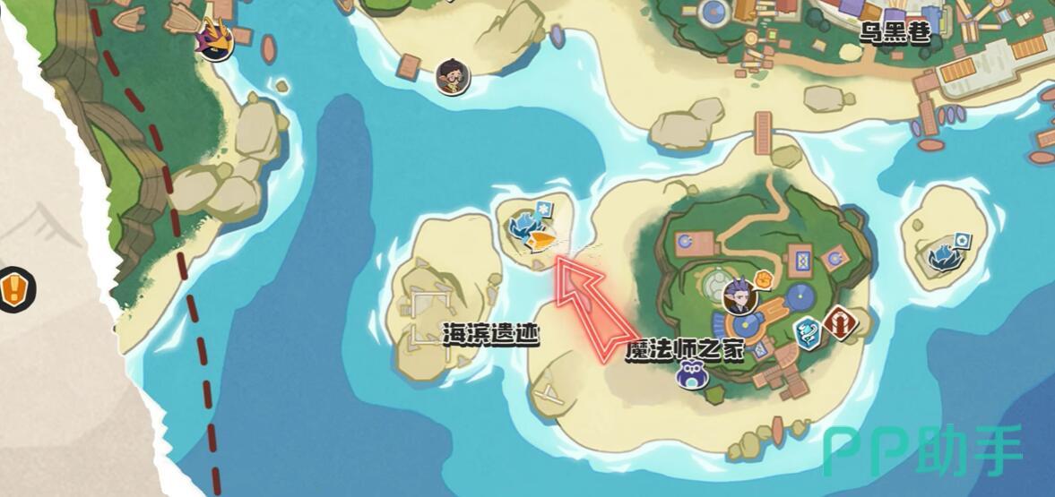 记忆石的捕捉区域位于上体地图标注的位置,我们要进入到海边遗迹,全天无时间限制。首先需找到散布在地图上的各种小书堆,需要大家互动,从入口向左走20步可见第一个,绕过巨石后有第二个,沿着悬崖边缘能发现第三个,其中一个书堆是下图所示的样子,我们直接拥精灵球互动就能触发战斗,战斗过程中记忆石是没有形态的,我们需要打空气突然后捕捉就可以了,捉住之后可以显现他的样子。