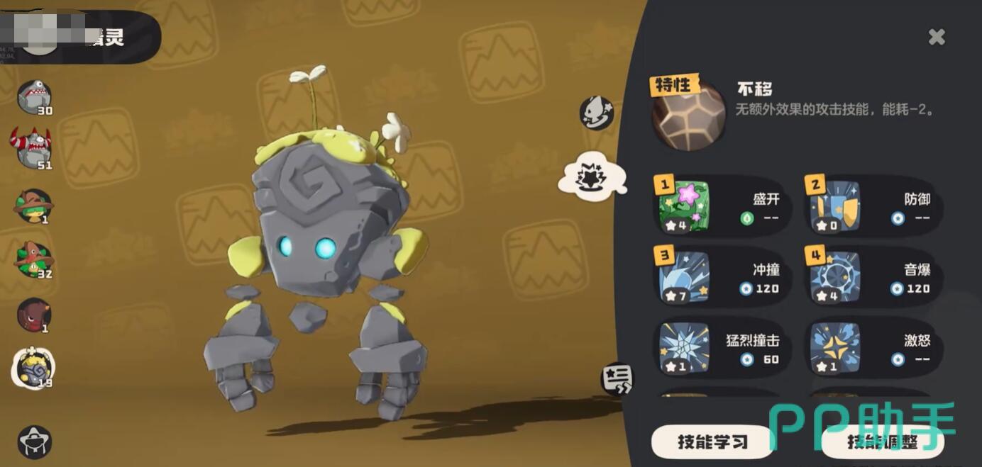记忆石的被动是无额外效果的攻击技能能耗-2,配招大家可以选冲撞、寄生种子、应激反应等,这三个基本就能覆盖前期玩法,用它单刷时平均能耗控制在3点以内,对比起来精灵来说开荒更节省一些。总体上来说比较难抓,前期适配性还行。但是种族值高达509,生命、物防全部三位数,它也是为数不多能开杀暴技能的精灵,还有后期的强势技能摇篮曲、晒太阳都能学。可以成为仪式巨像的低阶平替。
