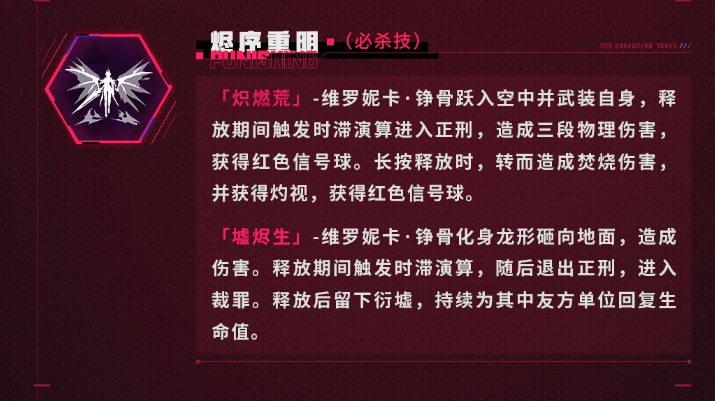 作为队长时,维罗妮卡·铮骨的“诛恶涤罪”技能可为全队提供攻击力加成,同时提升物理伤害与焚烧类伤害输出,使其成为组队配置中的优质队长人选。她的另一项技能“焌恶苏生”兼具伤害与治疗功能,在关键时刻能有效支援队友,提升队伍生存能力。此外,她的职业技能还能在队友切换入场时提升其攻击力,并赋予相关伤害火属性特征,进一步增强队伍的元素协同效应。