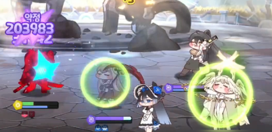 忧郁队在游戏当中也被大家叫做暗队,其中的人员有柯米、里昂、夏夏、希尔德、洛涅和琼安,其中的角色在一起就可以组成一个完整的忧郁队,其中大家可以放在前排的有科米和里昂这两个角色,主力效果就是在前排可以带来稳固的能力,科米的话,她在效果上面有一定的生命恢复能力,但是她并不是一个奶妈类型的角色,反而是防御效果非常不错的坦克,柯米可以触发的技能效果有巨大化的能力,此时敌人输出的话,她可以为后排挡住很大的空间,而且还还可以持续恢复自身的血量,这个恢复效果还是不会被敌方任何技能给中断的,所以在持久生存能力上面可以非常的强,她是很多队伍当中的主要前排人选之一。