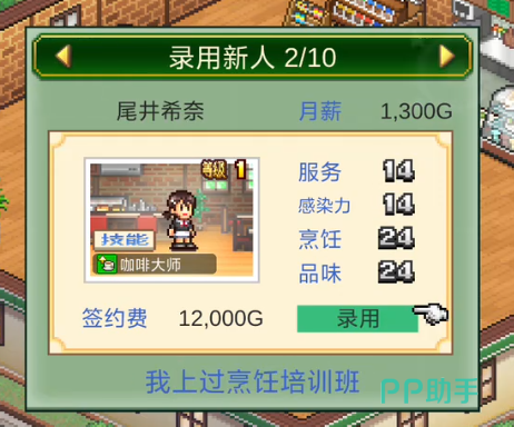 在初始阶段招聘员工时,建议优先考虑具备“咖啡大师”或“研究者”技能的角色。前者能够在制作饮品过程中提升出品质量,从而提高顾客满意度与收益;后者则有助于加快新菜单的研发速度,为后期扩展饮品线提供支持。这类员工不仅适用期长,还能通过持续培养延续至中后期使用。