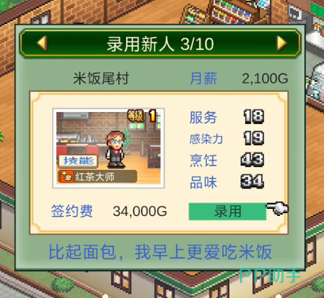 虽然员工系统并非本作最核心的机制,但其对整体经营效率有着不可忽视的影响。随着游戏阶段的深入,招聘渠道也会逐步解锁。通常来说,投入的资金越多,越有机会招到能力更强的员工。这也意味着,在游戏早期资源有限的情况下,很难直接获得高属性人才,因此科学规划前期人选尤为重要。