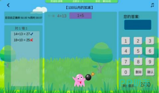 10以内的加减法以及20以内的加减乘除法,在这里展现的特别全面,根据孩子的实际情况,挑选不同的主题类型。开始后会随机给出不同的题目,比如4+13.在右边会让孩子们快速寻找到正确的答案,只要将正确答案输入进去后即可快速闯关。不光是在上学初期就可轻松场玩,就连在上小学后也是锻炼口算能力的最好途径。