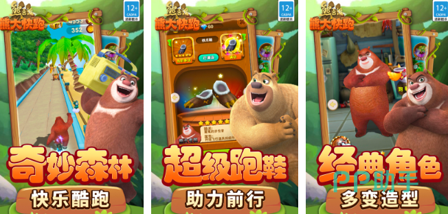 熊出没之熊大快跑一打开就像走进了动漫里,熊大、熊二、光头强的形象还原得特别到位,连说话的语气都跟动画里一样,场景也是熟悉的狗熊岭、伐木场、小镇街道,跑起来耳边全是森林的音效,玩法主打轻松休闲,滑动屏幕就能让熊大跳过高树、滑过木墩、避开光头强设的陷阱,偶尔还会遇到蹦蹦、吉吉国王扔道具过来。