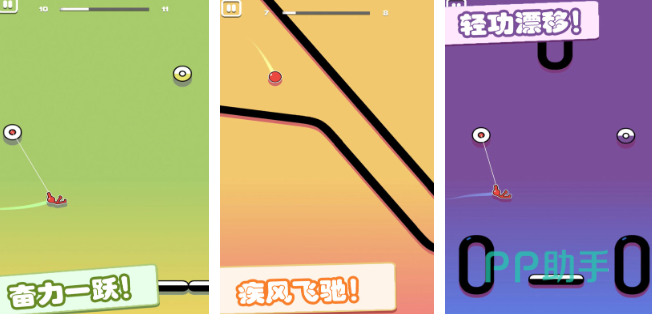超级跑酷侠手游把舞台搬到了都市街头,操控的火柴人跑酷者身手特别敏捷,在川流不息的马路、高耸的楼宇间穿梭,核心操作玩法是需要抓钩摆档并向前抛出,屏幕中会出现各种道具锚点,需要操作抓钩勾住这些锚点,松手就能顺着抛物线飞出去,飞的时候得看准下一个锚点,不然很容易掉下去摔死,道具不算多但都很实用,加速剂能让抓钩发射更快,重钩能勾住更重的物体,还有护盾能扛一次撞击。