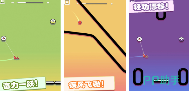 《超级跑酷侠》将舞台设定在现代都市之中,玩家操控敏捷的火柴人跑酷者在高楼林立、车流不息的城市间穿梭。核心玩法依赖抓钩系统:向前抛出抓钩并勾住空中锚点,松手后依抛物线飞行。飞行过程中必须预判下一个落点,否则容易坠落失败。道具种类虽不多,但功能明确实用——加速剂提升发射速度,重钩可牵引重型物体,护盾提供一次撞击保护机会。