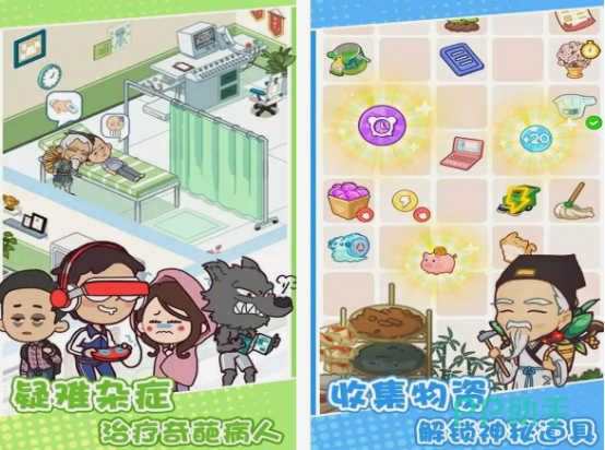 该游戏创新性地结合了合成机制与医院经营玩法。玩家可通过合并相同等级的员工或设备来升级更高级别的资源,逐步扩建医院规模。无论是应对普通感冒还是处理诸如“公主病”这类趣味病症,都能通过策略性合成功能完成治疗任务,从而获得成就奖励并提升行业地位。