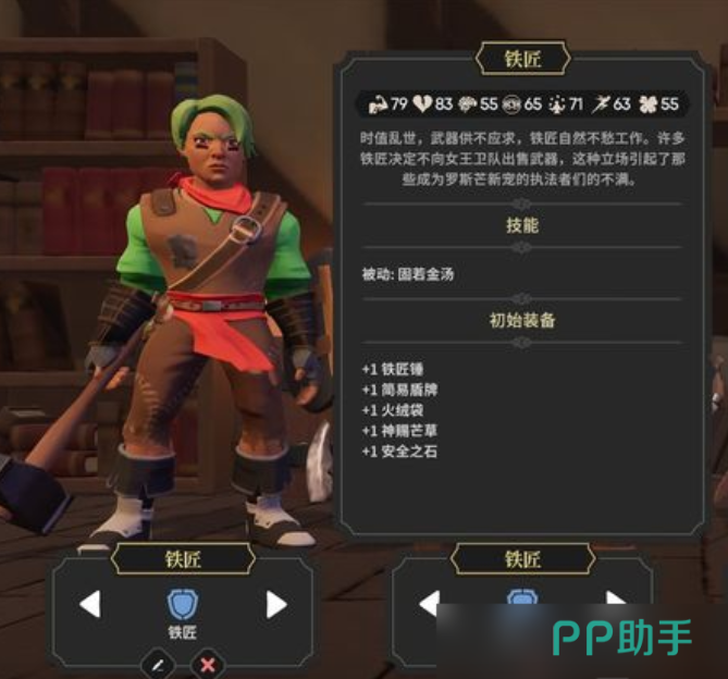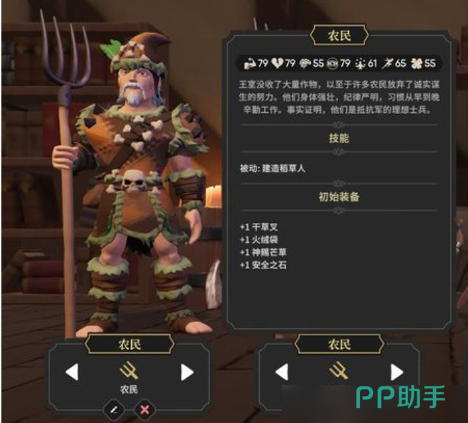 铁匠定位为防御型单位,在游戏前期作用相对有限,但进入后期阶段后其价值逐渐显现。“固若金汤”是其核心主动技能,使用后可生成护盾,有效减免来自敌方的伤害。至于樵夫,则需依赖“正义仲裁”这一双手武器专属技能才能发挥最大效能——当装备双手武器时,该技能可造成范围溅射伤害,提升清怪效率。