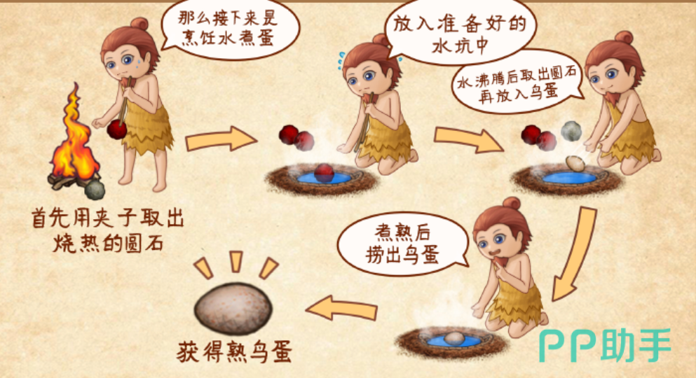 鸟蛋作为一种高营养食材,适合通过水煮的方式加工。具体操作为:先从火堆中夹出烧红的石头放入盛有清水的坑洞中,利用高温使水沸腾。待水开后取出热石,随即把新鲜鸟蛋放入热水中浸泡数分钟,便可获得一份美味的煮鸟蛋。