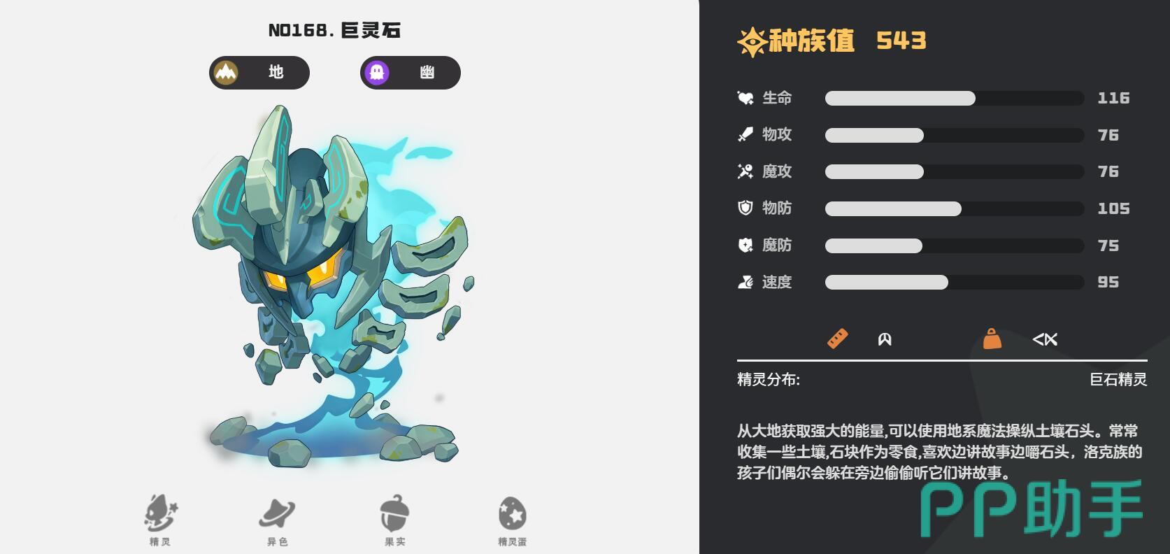 第二位是巨灵石,拥有地与幽双属性,基础生命116,物防105,速度95,兼顾耐久与出手时机。幽属性赋予其对幽灵系精灵的克制能力,能有效弥补队伍在对抗此类敌人时的短板。同时,它还能与地系成员形成能量消耗联动,被动机制为释放高耗能技能时,使对手同步损失相同能量点数,是速攻流派中不可或缺的辅助角色,特别适用于暗黑溶洞场景作战。