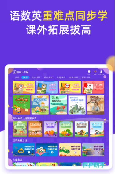集英语、语文、数学等多学科于一体的同步学习应用,配备大量由资深教师录制的教学视频,模拟真实课堂情境,便于学生课后回顾知识点。通过特色课程激发学习兴趣,强化单词记忆与正确发音训练,同时融入少儿百科内容,拓展孩子的知识视野。