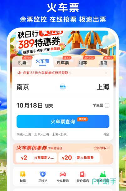 专为追求高性价比出行的用户设计,平台汇集大量特价机票资源,价格公开透明,避免隐性收费。根据用户的搜索记录智能推荐优惠航班,提升购票效率。除航空服务外,还支持火车票查询与预订,具备余票监控功能,一旦有票源释放即可快速抢购,实现多场景出行无缝衔接。