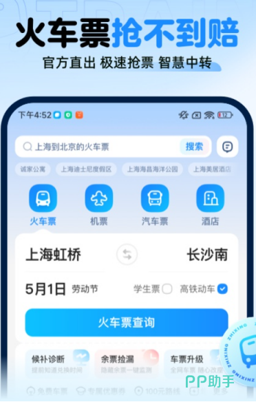 这款应用为用户提供了全方位的出行服务解决方案,除了支持高铁票和火车票预订外,还集成了汽车票、景点门票、酒店预订以及打车服务等多种功能。界面清晰,操作简便,用户可实时查看各时段列车余票情况,并支持购买学生票与儿童票。此外,App还提供机票查询服务,涵盖多家航空公司的航班信息,帮助用户掌握航班动态,有效规避延误风险,是综合出行类App中的佼佼者。
