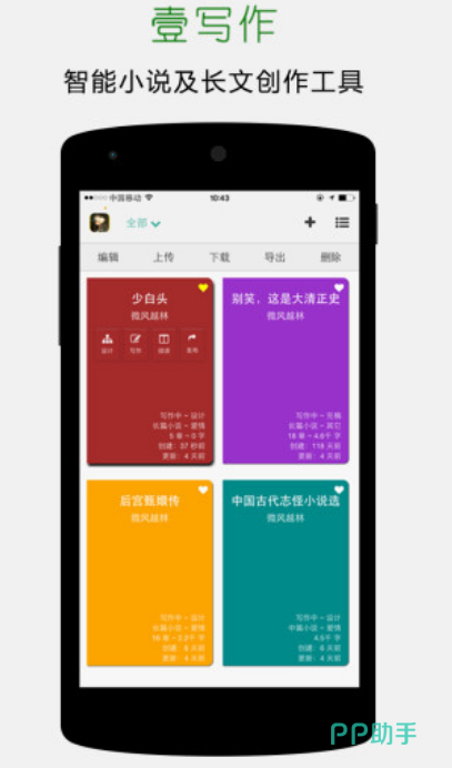 无论你钟情于言情题材,还是偏爱武侠、玄幻类长篇作品,《壹写作》都能为你提供专业级的支持。这款工具专注于中长篇小说及连载内容的创作管理,支持大纲设定、角色设定、情节推进等多项核心功能。可在手机和平板设备上无缝切换使用,方便随时捕捉生活中的点滴灵感,并将其融入到正在进行的作品之中,还可自由调整章节顺序与内容布局。