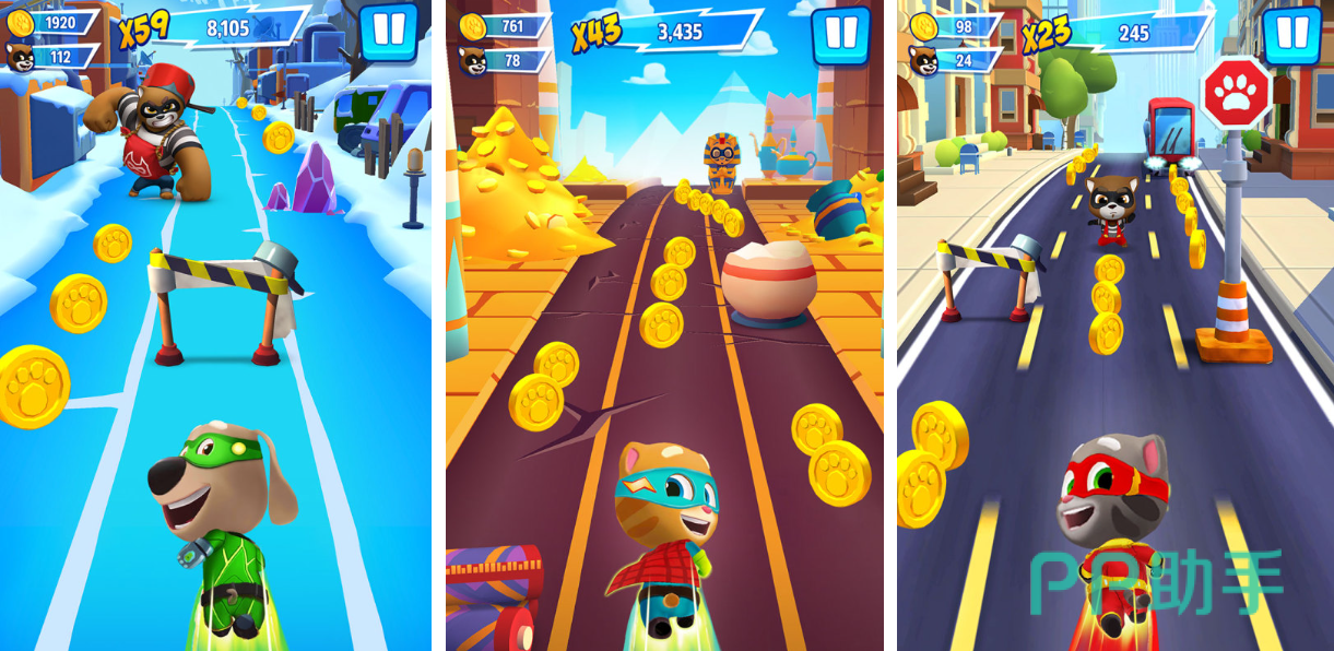 在这款跑酷手游中所有的小动物都会成为超级英雄,身穿紧身衣的超级英雄小动物看上去极为可爱,控制系统简化容易上手能轻松多开各种障碍物,跑酷+抓捕反派等多样任务让这款佳作更加好玩,紧迫感十足的跑酷过程也增添了本作魅力,小动物造型一如既往的呆萌仿佛进入了汤姆猫的奇特世界。