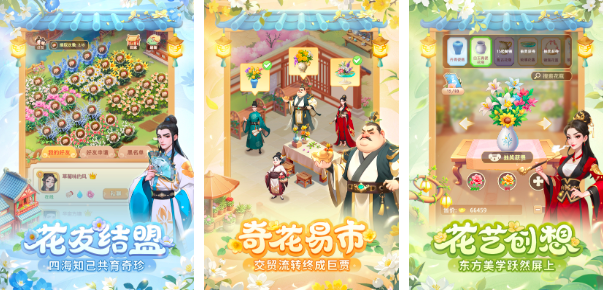 扮演一名穿越至古代的花匠,经营属于自己的花店。本作主打模拟经营与社交互动,支持培育上百种鲜花,并通过赠花结识志同道合的好友。除了基础种植系统,还可使用多样主题装饰打造专属后花园或花坊空间。无论是庭院布局还是店铺装潢,都能体现个性化创意,享受从零开始构建美丽花园的乐趣。
