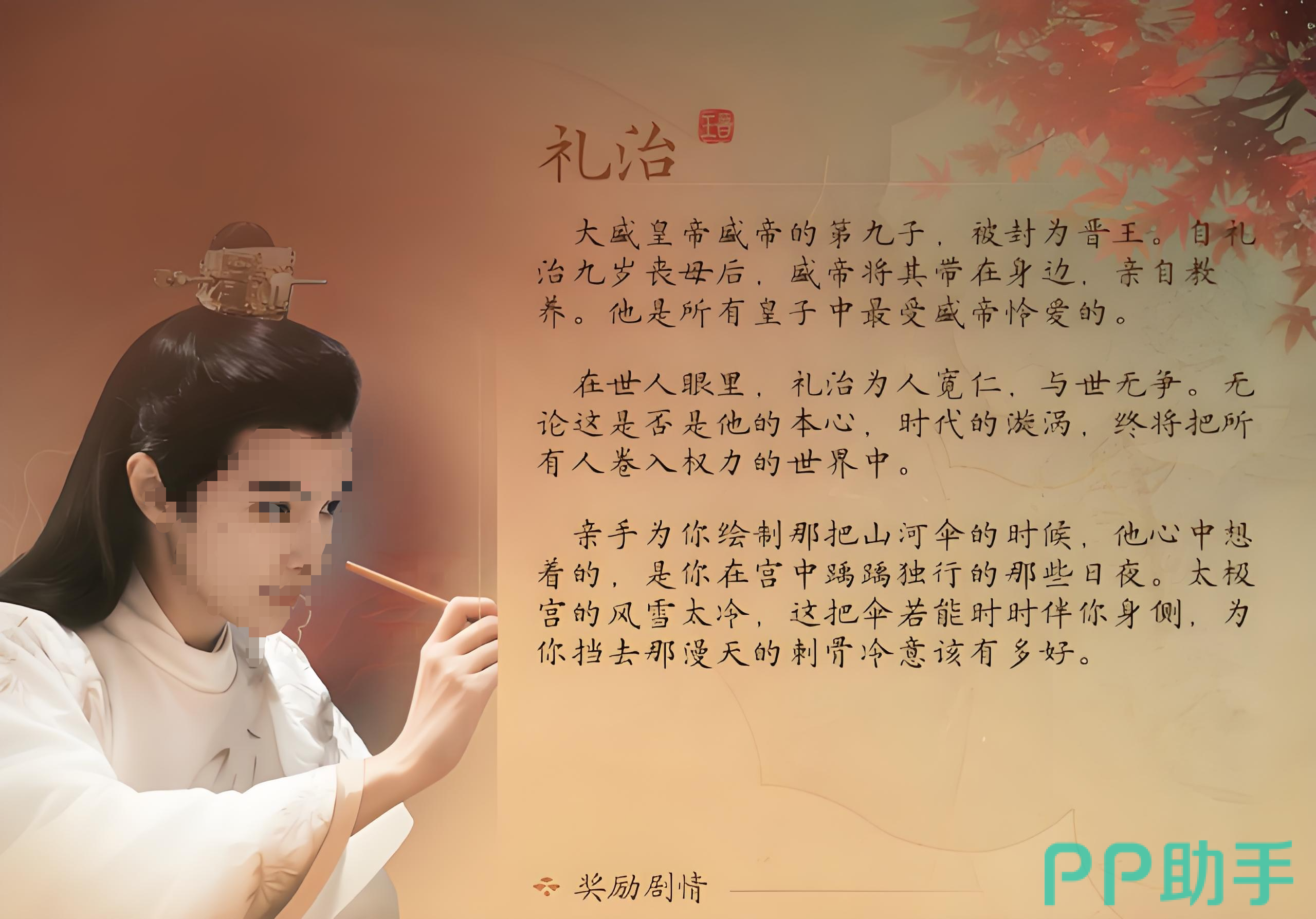 通过以上介绍可以看出,李治不仅拥有出众的外貌与深情的性格设定,在剧情互动中也具备高度的情感参与度。玩家在成为主角后,可根据个人偏好决定是否与李治展开后续情感发展。综合来看,李治是一位极具发展潜力的角色,值得在游戏中重点关注与培养。