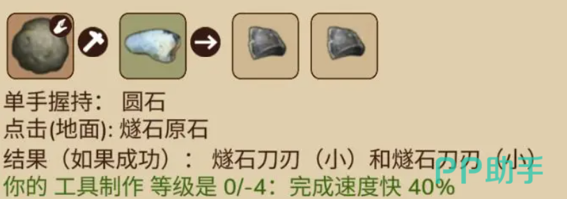 首先,玩家需要通过采集植物、探索环境等方式积累生存点数,用于解锁首个实用工具——燧石刀刃。该工具不仅可用于生火,还能切割芦苇与处理食材。解锁后,前往附近的平原区域寻找燧石原石和圆石各一块,这两种材料在初期地图中分布广泛,容易获取。