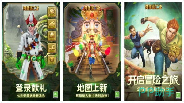 作为跑酷游戏的经典之作,《神庙逃亡2》在前作基础上进一步拓展玩法内容。除了基础的滑行、跳跃与转向操作外,新增矿车追逐、空中索道穿越以及铁轨切换等动态机关,大幅提升游戏可玩性。每一局的地图布局与天气效果均随机生成,搭配沉浸式的背景音效与立体视觉呈现,让每一次逃生都充满未知与紧张感。