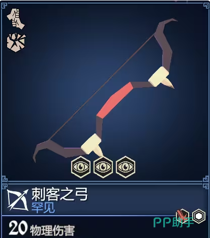 玻璃弓作为稀有品质武器,基础物理伤害高达20点,并附带“晶化之箭”特效,同时提供+5闪避值,显著提升角色生存能力。普通强盗弓则兼具远程射击与近战挥砍功能,灵活性强,且对飞行目标有25%的伤害提升。刺客之弓同样是罕见级别装备,基础伤害为20,射击稳定性优异,暴击率提高15%,并对人形敌人造成额外20%伤害,适合暗杀型战术配置。