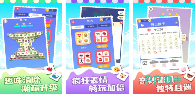 表情消消乐全是熟悉的表情包头像,在消除的时候每个表情都会做出独特的动作,整体玩法上还加入了情绪连锁机制,连续消同一种情绪的表情能触发爆发,连消生气脸能炸周围的表情范围特别大,障碍也很有特色,模糊表情得消周围的才显形,锁定表情要和相邻的配对解锁,解锁后变随机情绪,可能意外触发爆发。