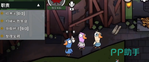 在找到了几个靠谱的好人之后,那就等同于多了防护罩可以安心的做任务,还可以帮助队友更快的去排除可疑人员。当然在做任务的时候也不要过于的马虎,加拿大鹅的任务其实和普通鹅是一样的,例如砍木头还有整理宝藏。在完成任务之后,就可以推进好人阵营的胜利进度。不过在做任务的时候也必须要保持警惕心,需要仔细的留意周围有没有可疑的人,比如在你身后那一些不做任务的人,很有可能就是鸭子一直都在寻找。找机会随时都有可能会刀你。你必须要找到人多的地方。