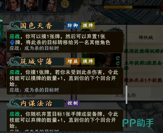 还有一个值得注意的细节:该角色的技能数量似乎没有上限限制。我曾测试过一次,连续叠加了超过20个技能,全身布满增益效果,面对任何目标都能做到瞬间秒杀,体验感极其畅快。当你手牌较多且存在低效卡牌时,不妨使用以德服人,把无用牌转移给人机单位,随后将其击杀。这样既能清理冗余手牌,又能获取击杀收益,实现双重目的。特别提醒一点:切勿拾取遁甲天书,一旦获得该技能,所有已积累的复制技能将被清空,前期努力将全部作废。